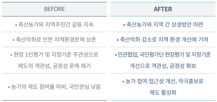 확보하고, 깨끗한 축산농장 지정기준 개선으로 객관성 또한 확보할 수 있었습니다.