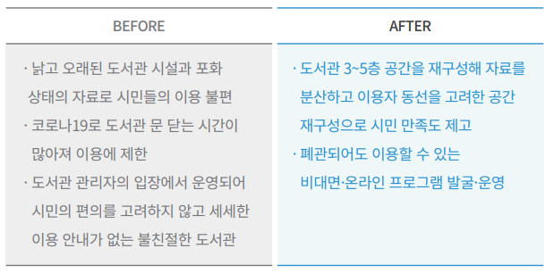 □ 도서관 3~5층 공간 재구성과 통합 디자인 사업을 추진해 시민 만족도 제고