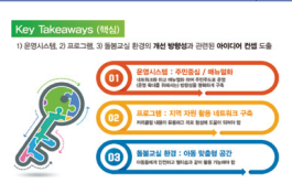 프로그램 구축, ③아동들에게 안전하고 멀티숍과 같이 활용 가능한 아동맞춤형 돌봄교실환경 개선의 아이디어 컨셉을 도출하였다.