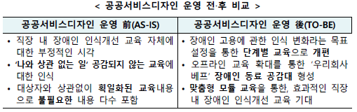 - 개선된 문화체험형 교육 직장 내 장애인 인식개선 교육을 통한 평가 및 발전방안 마련