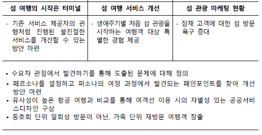 - 유사성이 높은 항공 여행과 비교를 통해 여객선 이용 시의 차별성 있는 공공서비스디자인 구상