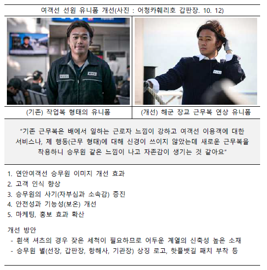 ○ 고객 만족도 향상을 위한 여객선, 터미널 서비스 개선