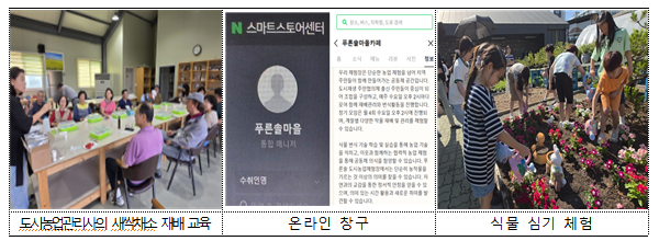 방치된 공간을 텃밭정원과 골목정원으로 조성하고, 고령층은 재배·지도, 청년층은 디자인·온라인 유통, 아동층은 체험·교육을 담당하여 공동체의 지속가능한 운영을 실현했다. 이번 사업으로 주민 만족도와 참여도가 크게 향상되었으며, 4개월간 도시농업 활동으로 운영비를 직접 창출했다. 또한 세대 간 소통 지속 요구도가 86%로 나타나 갈등 해소 효과도 입증됐다.