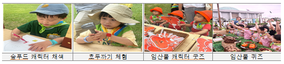 • 미래세대(영・유아기, 청소년기) 대상 임산물을 직접 보고, 만지고, 맛보며, 향기로 느낄 수 있는 다채로운 감각 경험을 제공하여 임산물에 대한 관심 유도 및 친밀감 형성 지원