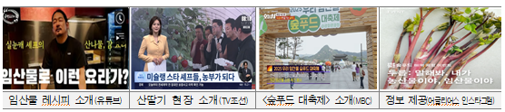 • 먹거리 임산물 소비 붐 조성을 위해 방송・미디어, 주요 SNS 채널을 통한 마케팅 추진