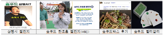 • 숲푸드 삼행시 챌린지, 한호흡 챌린지, 숲푸드 박스 SNS 후기 이벤트 및 놀이자료 제작・배포 등 다양한 참여형 콘텐츠 캠페인을 통해 소비자의 자발적 참여와 브랜드 확산 유도