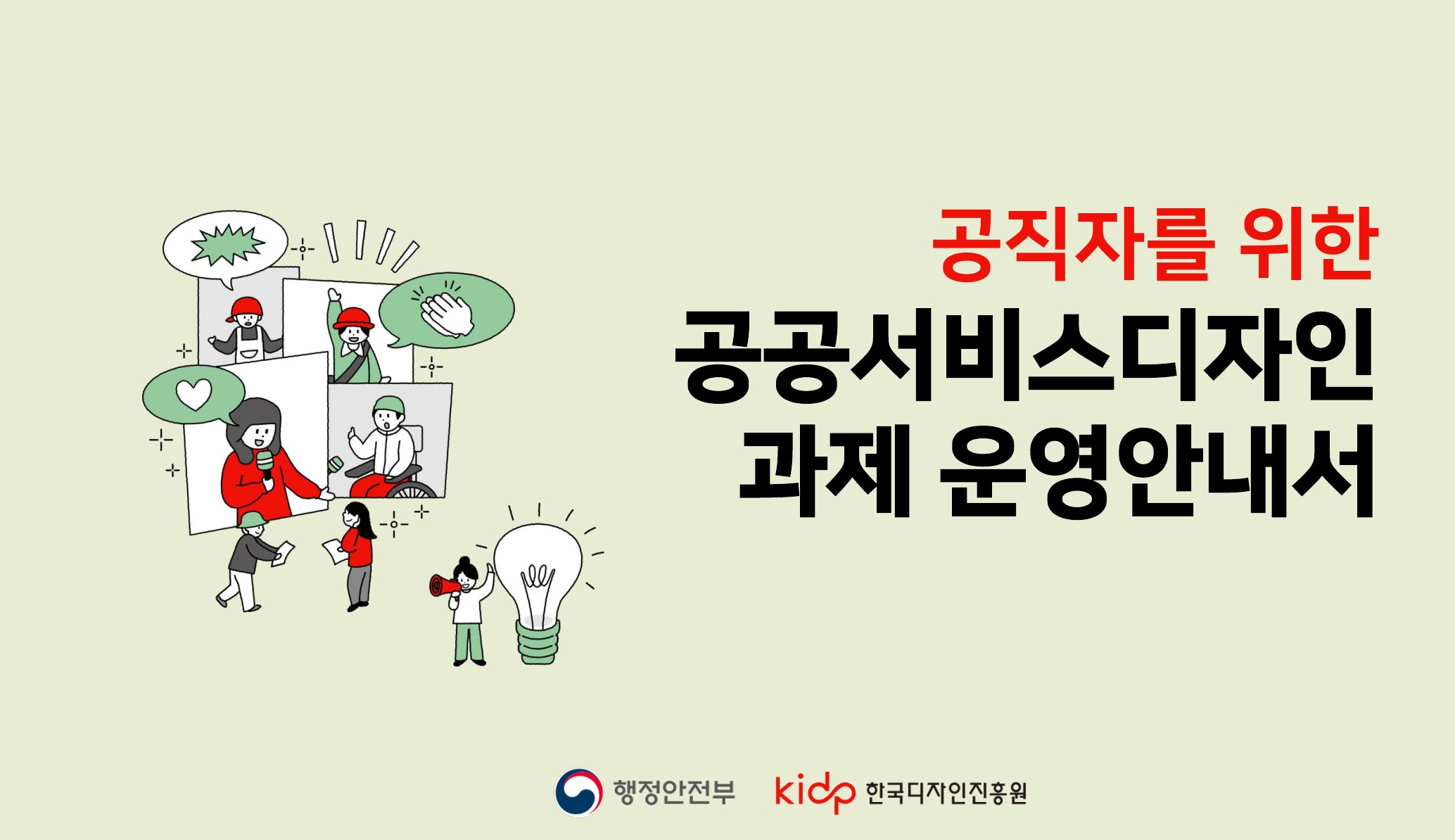 행정안전부(이하 행안부, 장관 직무대행 고기동)와 한국디자인진흥원(이하 KIDP, 원장 윤상흠)이 공직자들이 서비스디자인을 통해 국민의 수요를 반영한 정책을 수립할 수 있도록 ‘공직자를 위한 공공서비스디자인 과제 운영안내서(이하 운영안내서)’를 제작 및 배포했다.